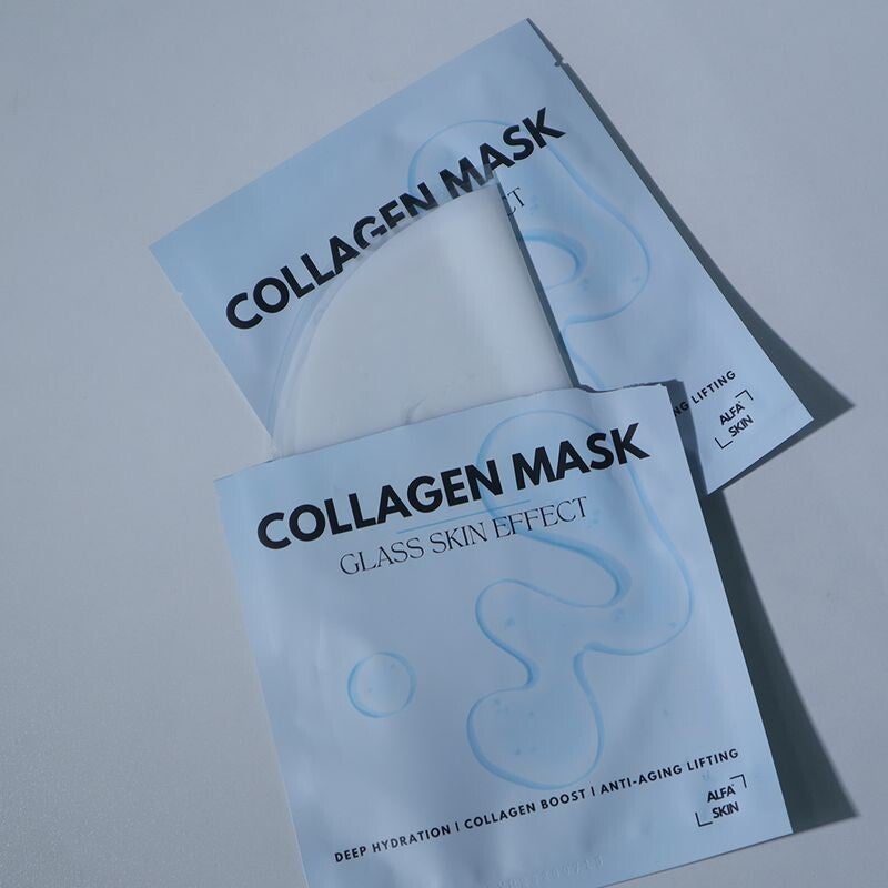 Het Collagen Vliesmasker van ALFA SKIN combineert gehydrolyseerd collageen, natriumhyaluronaat, niacinamide en rood zeewier voor een intense huidboost.